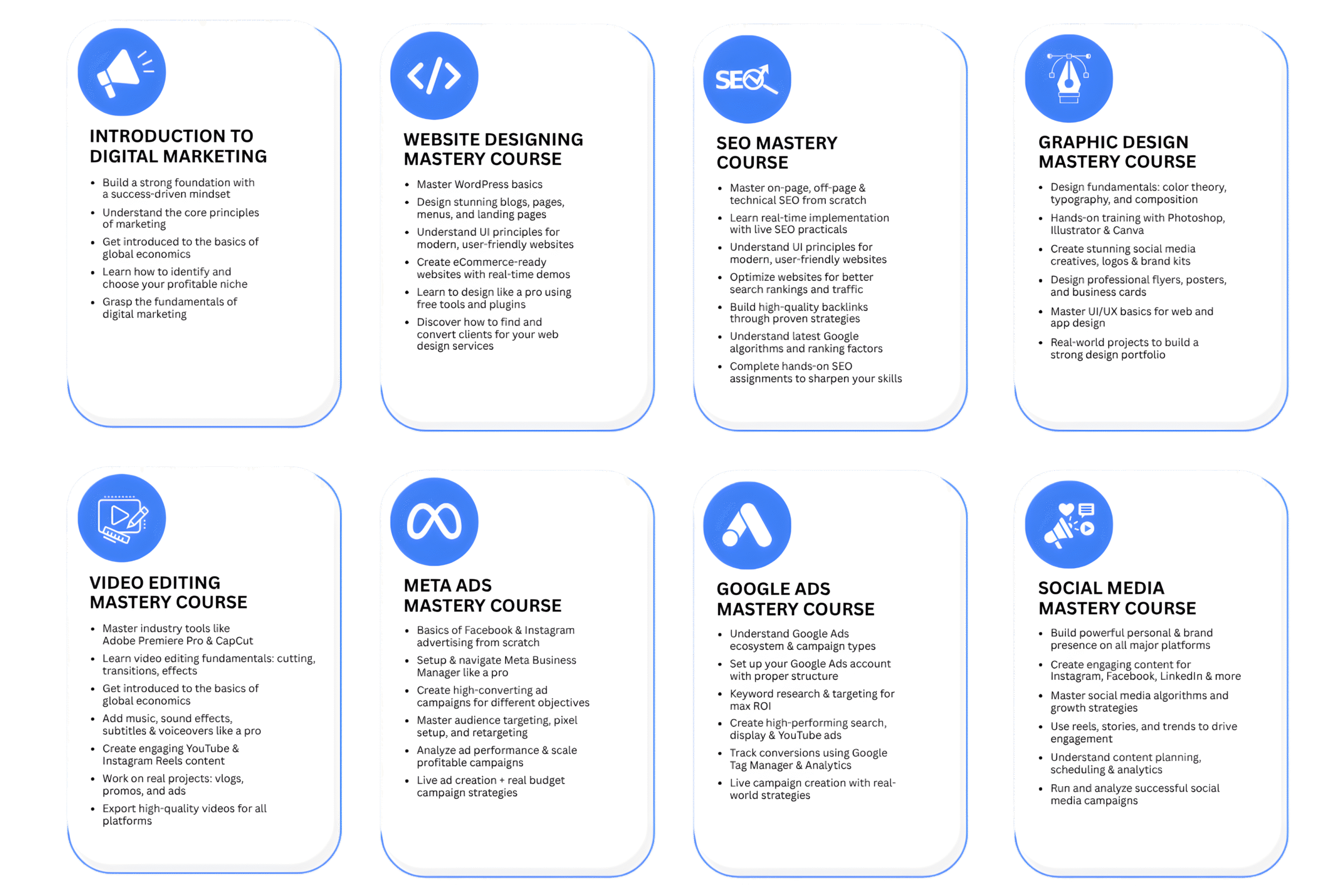 Comprehensive digital marketing courses covering SEO, social media, content creation, and more.